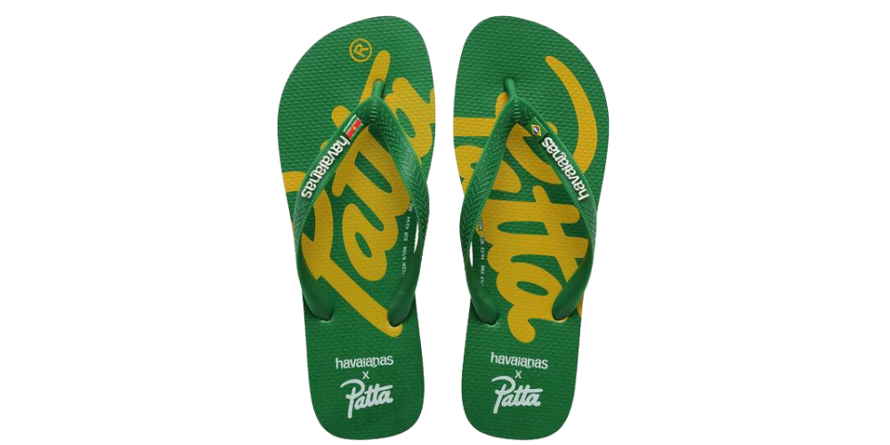Disponíveis em duas combinações de cores – preto e branco e verde floresta com amarelo – estas sandálias são uma fusão entre estilo tropical e atitude urbana. A embalagem personalizada Patta x Havaianas destaca-se em tons de verde e amarelo, com design exclusivo em cartão reciclável, incluindo um cabide embutido.